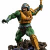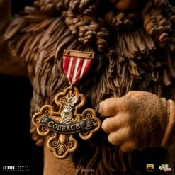 Following the yellow brick road, a girl passes by a dark and scary forest at night, where she comes across an enormous feline figure that jumps out of the dark. Furiously roaring to scare her, she hides behind a big tree, but her pet dog Toto barks and growls at the beast that chases after him. Fearing for her small friend, she slaps the feline’s nose and scolds him, and, to her surprise, the apparently fierce animal has a breakdown and starts crying and sobbing. With the paws retracted and a frightened face, Iron Studios bring the statue “Cowardly Lion Deluxe – The Wizard of Oz – Art Scale 1/10”, with the anthropomorphic lion of Oz who is even afraid of himself, played by Bert Lahr, with his bravery medal on his chest, over a pedestal of the beautiful landscape of his enchanted world, next to a tree from his forest, with towers from the Emerald City in the background and the yellow brick road at his feet. He then joins the girl Dorothy and her friends in the search for the mysterious wizard, so that the lion can ask the wizard to make him brave.