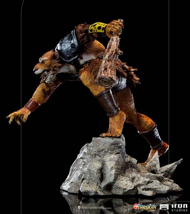 Stealthy and treacherous, with canine features, a humanoid with a body covered in brownish-orange fur wields a primitive, but no less dangerous, Wooden Club, moving between rocks on the wild planet Third Earth. He is protected solely by a metallic gladiator shoulder pad, which covers the long tufts of fur on his left shoulder. Iron Studios presents the “Jackalman – BDS ThunderCats – Art Scale 1/10” statue of the cunning but cowardly member of the Jackalmen race from the planet Plun-Darr, and one of the main members of the Mutants, a group composed of different races of animalistic humanoid barbarians, who are among the enemies of the ThunderCats.