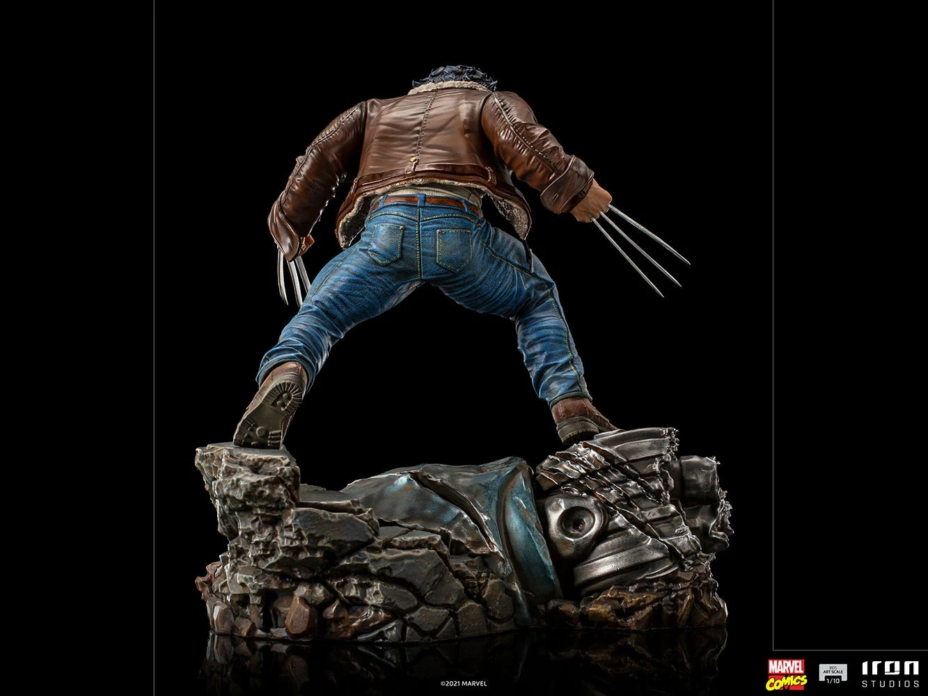 The relentless mutant hero releases his sharp claws from his fists and reveals all his fury in the expression of his countenance. The wounds on his face reveal his metallic skeleton, seconds before they heal, due to the superhuman healing factor he possesses. He`s standing on top of a base that resembles waste and rubble, the remains of a destroyed Sentinel robot, and his home in Mansion X. In this way, Iron Studios presents the statue “Logan – X-Men – BDS Art Scale 1/10”, inspired by the civil identity of the most popular X-Men. Wearing his best-known look, a leather jacket, t-shirt, and jeans, he`s ready to defend the friends and allies he considers family, against the attack of the Sentinel robots controlled by Magneto, and a legion of mutant villains. They are all part of the largest statue diorama ever made on this scale.