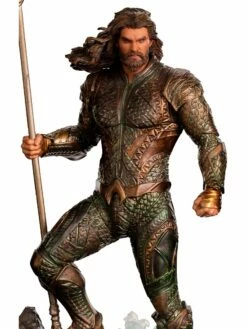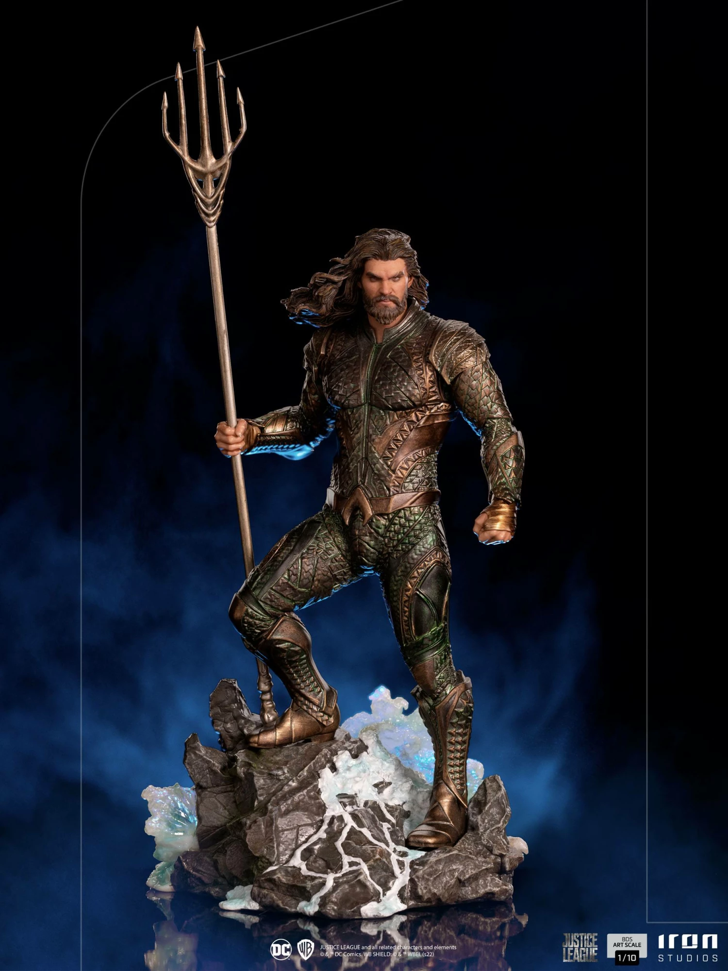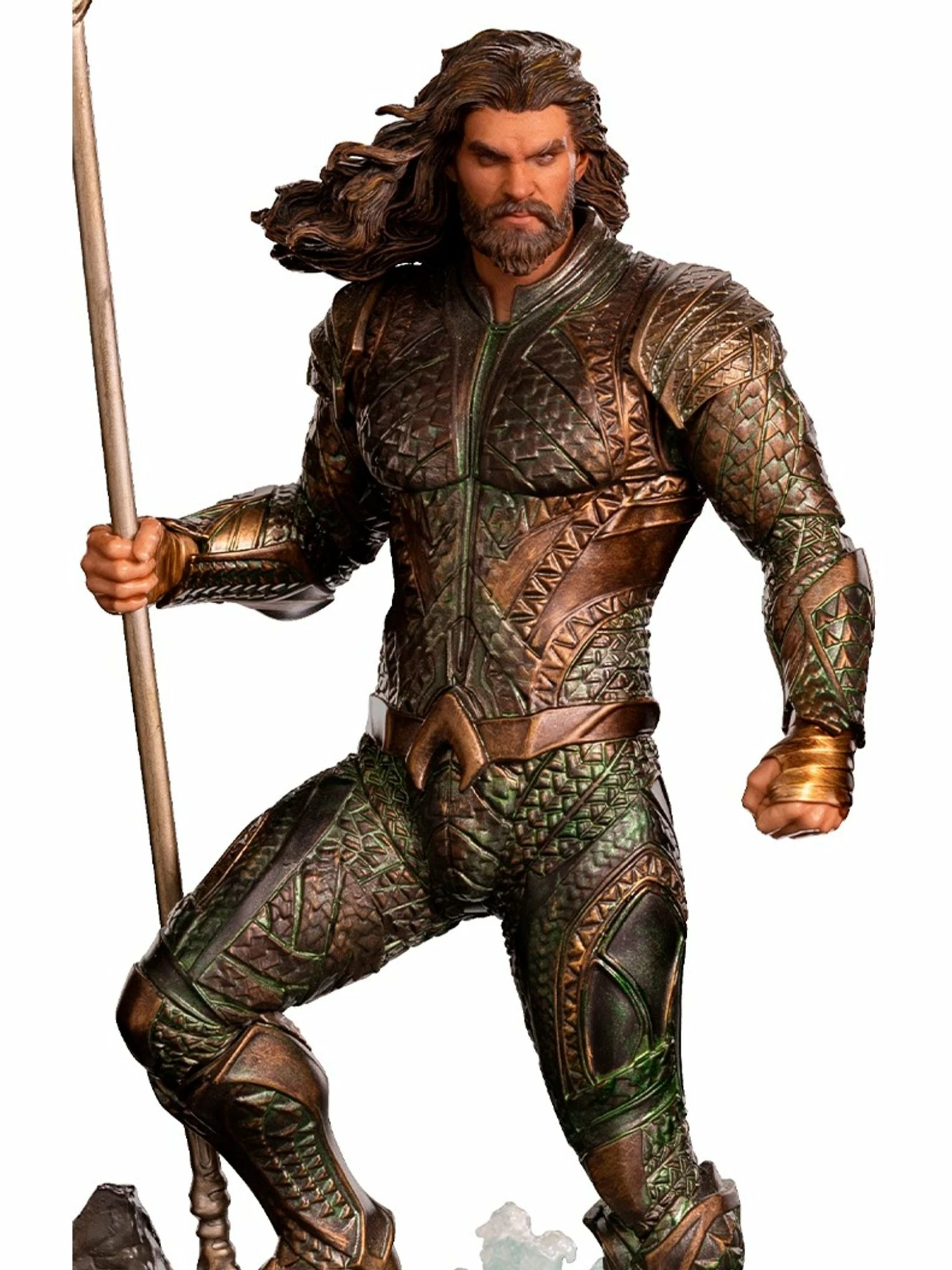 On a rocky pedestal, the almighty image of the monarch from a millennial and ancestral aquatic kingdom, expresses his anger with his eyes and clenched fists, wearing his old green and gold Atlantean armor and holding the Atlanna’s Trident, a weapon that belonged to his mother, and that gives him the power to control the waters and amplify his speed while underwater. Ready to face the New God Steppenwolf and his army of Parademons, next to his new heroic allies, Iron Studios presents the statue “Aquaman – Zack Snyder`s Justice League – BDS Art Scale 1/10″ with the hero and protector of the depths, son of earth and King of the Oceans, and founding member of the Justice League.