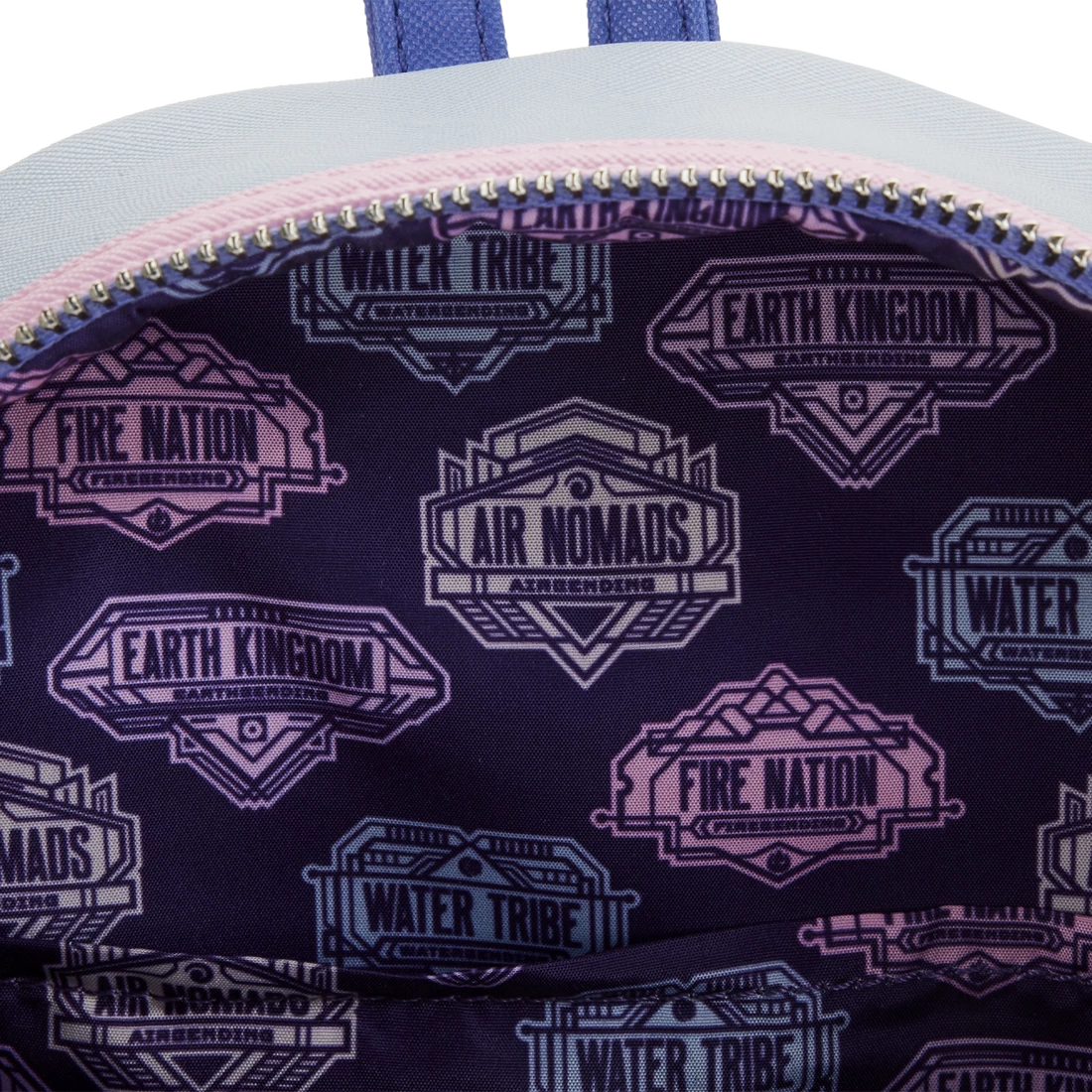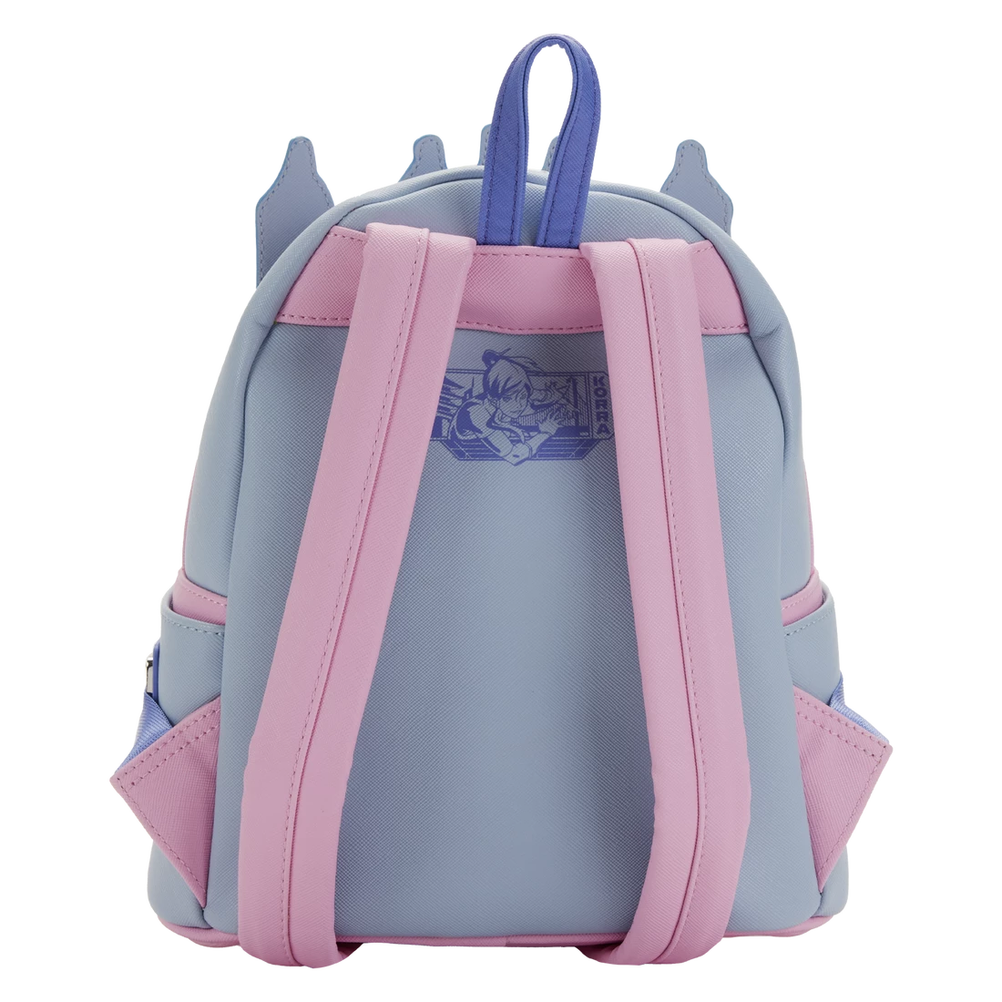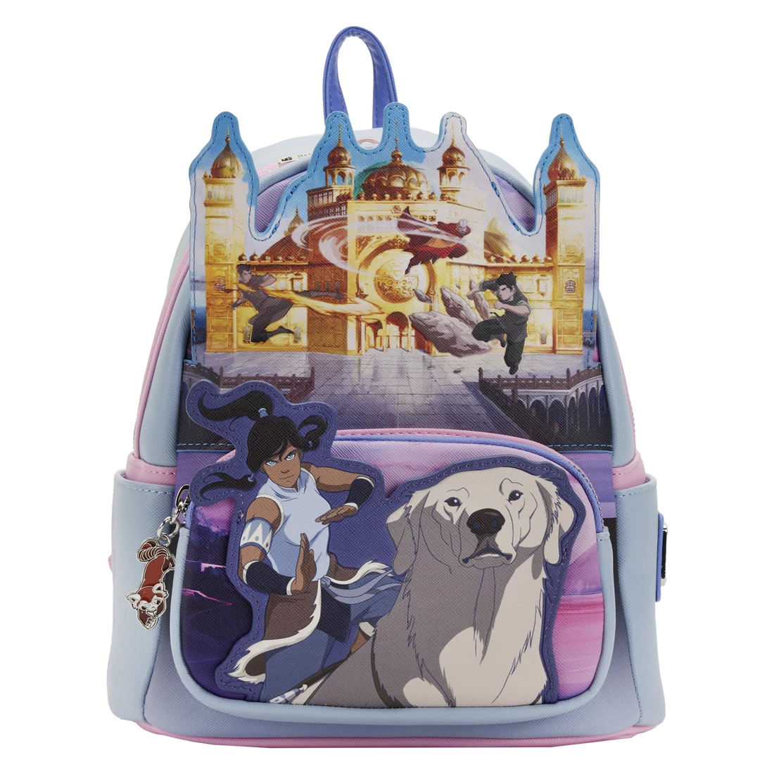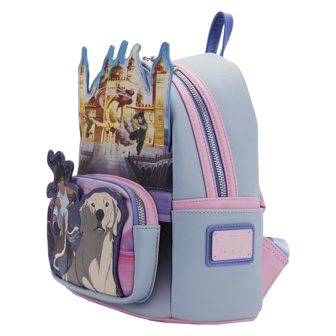 On the front zipped compartment, Korra and Naga are ready to fight any battle. Above them, the Pro-Bending Arena shines with spectacular pro-bending competition action. Debossed and printed element icons appear on one of the side pockets.