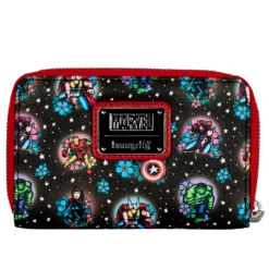 Assemble a superhero team to help you power through your day with this Marvel Avengers Tattoo Zip Around Wallet. Captain America, the Hulk, Iron Man, Thor, the Black Widow, and Hawkeye gather in a classic rose tattoo motif on this zip around wallet.
