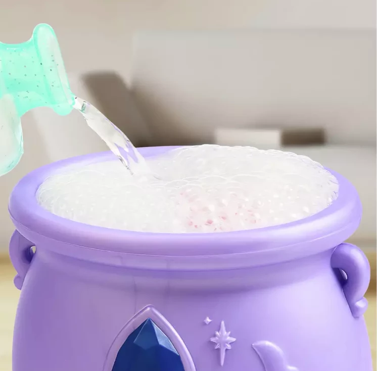 Begin the magic by sprinkling the Bubble ‘N’ Fizz Dust into the Cauldron before naming your Mixie by writing on the Naming Scroll and dropping it inside. Then add water and watch as the Cauldron bubbles and fizzes to reveal the cutest Mixie Plushie and other magical surprises from within the Cauldron.