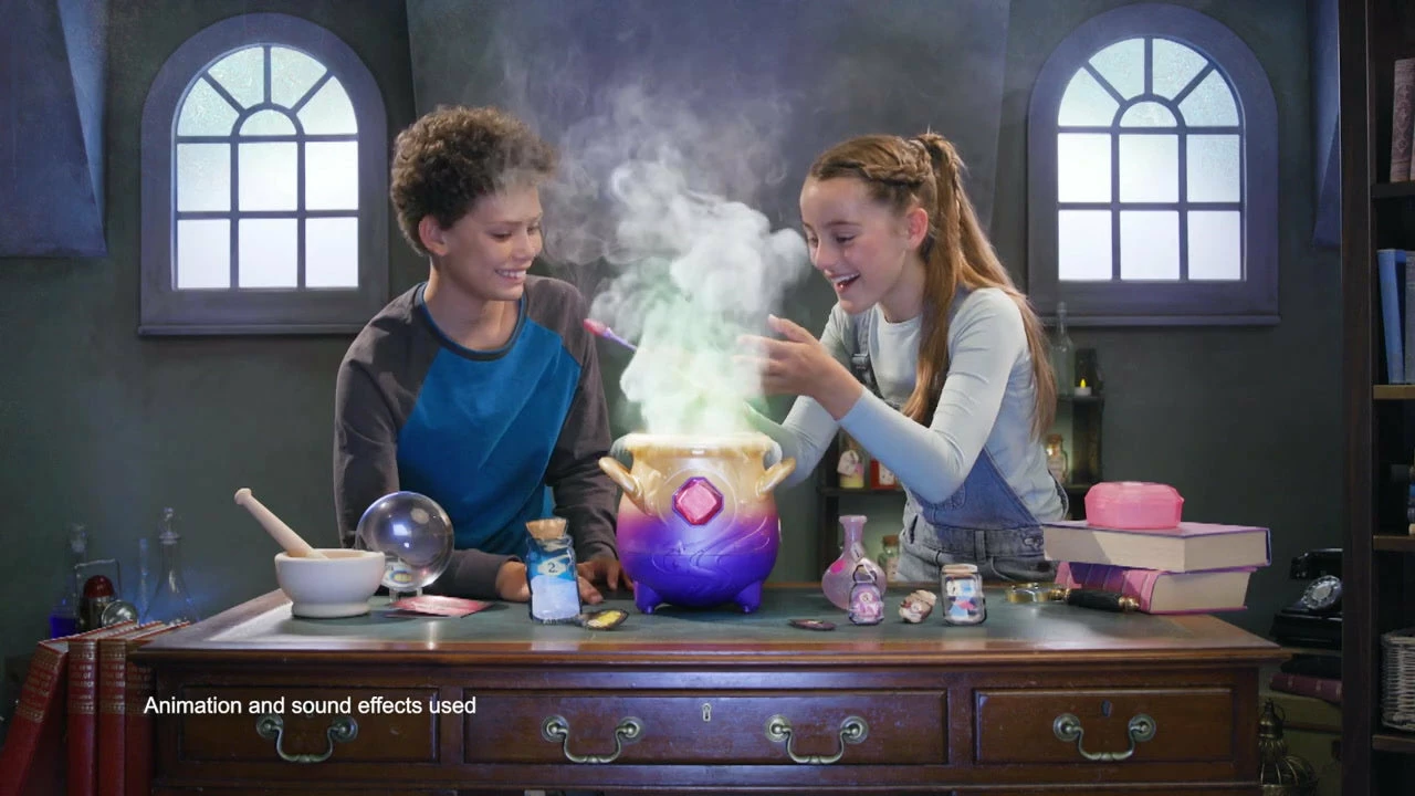 First read the spell from your Spell Book. Add the magical ingredients to your Cauldron one step at a time. Each ingredient helps your creature come to life. As you go through each step of the spell and tap the Cauldron with your wand, your Cauldron will react by lighting up and making different sounds. Now watch as REAL mist begins to rise from the Cauldron. Listen! Do you hear your Magic Mixie coming to life? Wow, you’ve just created a magical new friend!