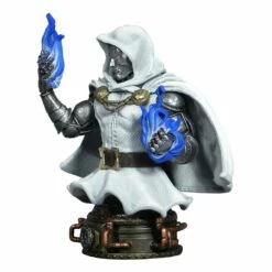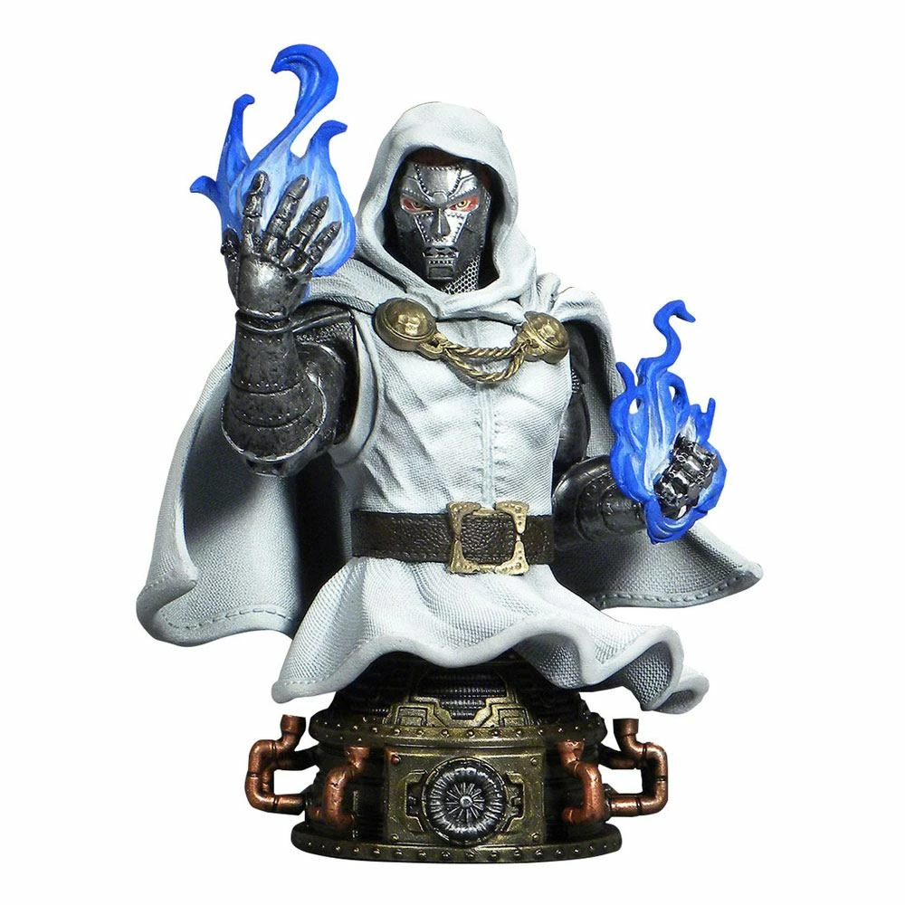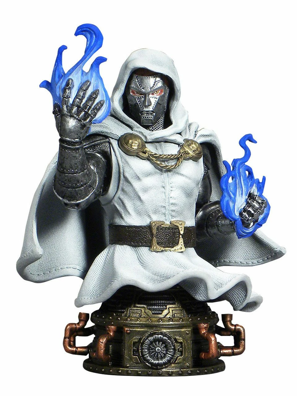 Wearing his white robes as seen in the hit Marvel crossover Secret Wars, this approximately 6-inch mini-bust of Doom wields translucent blue energy as he prepares to cast a spell, or perhaps unleash a blast from his high-tech gauntlets.