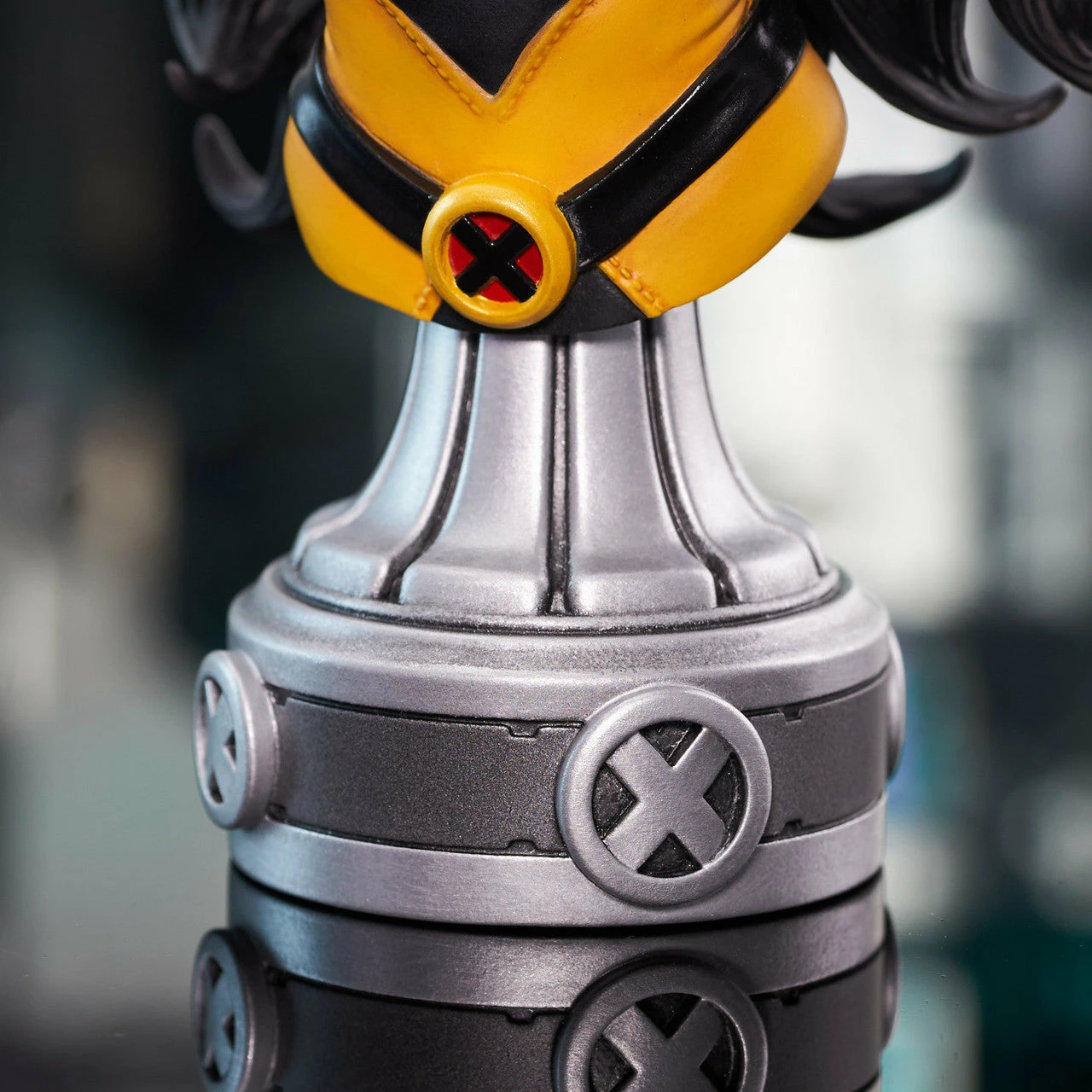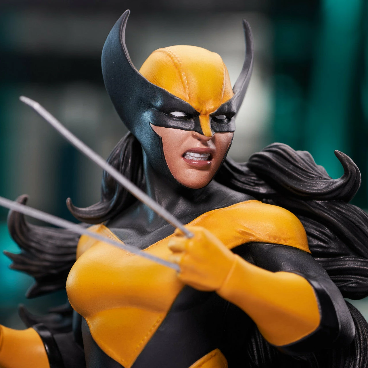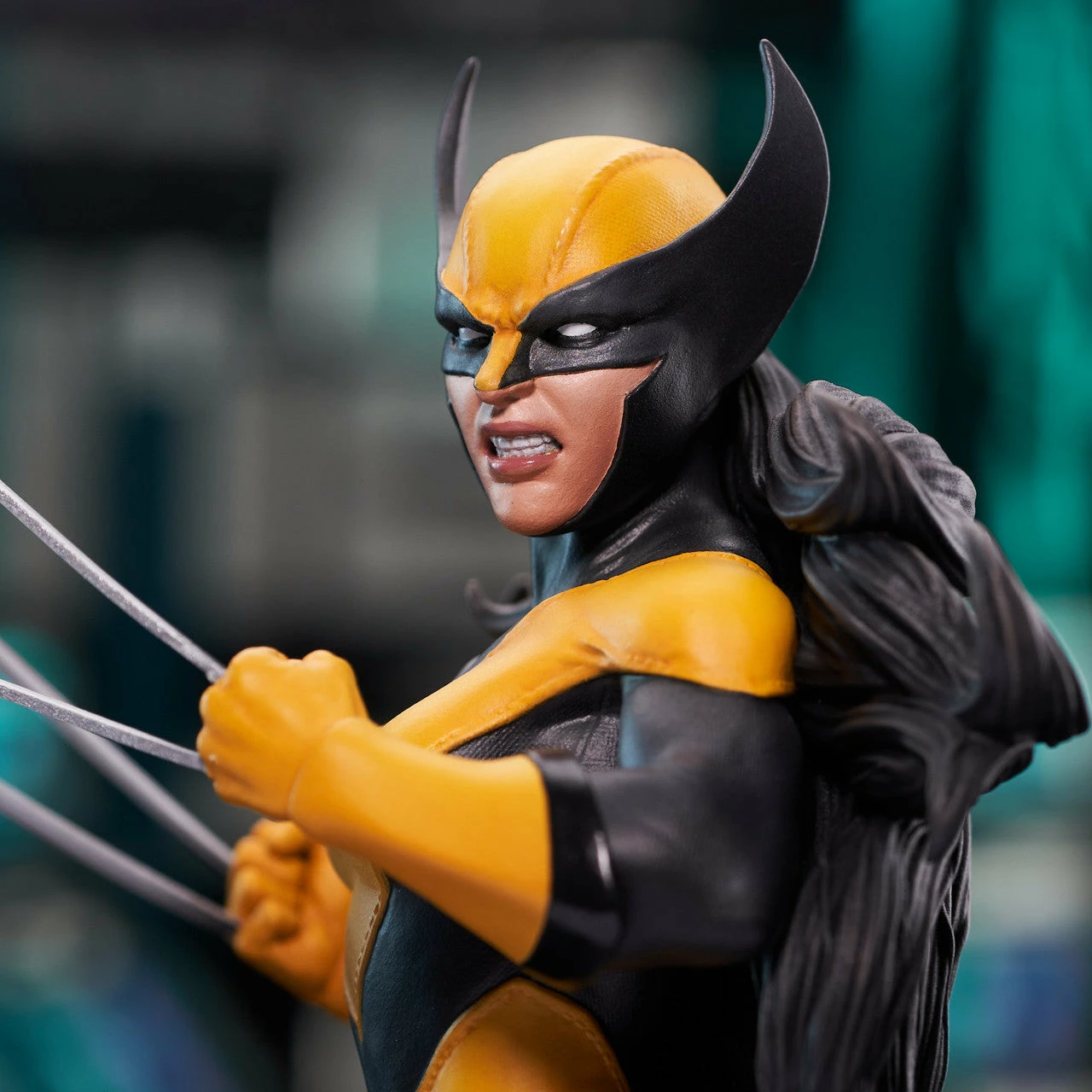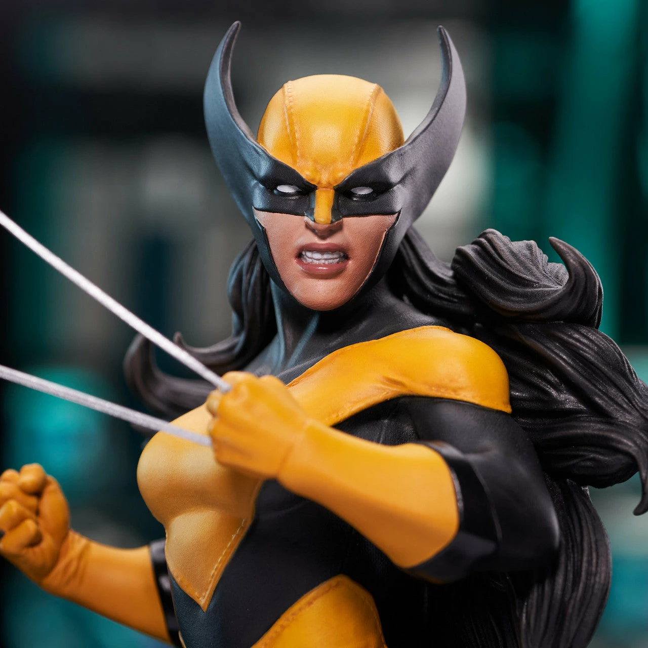 Like father, like clone! The all-new Wolverine gets an all-new bust in the 1/7 scale mini-bust line from DST! Laura Kinney, a.k.a. X-23, wears her new comic-based Wolverine costume and flashes her twin claws in this beautiful new 6 inch-tall sculpture, atop an X-Men logo base. Limited to only 3000 pieces, it comes packaged in a full-color box. Designed by Nelson X. Asencio, sculpted by Juan Pitluk!