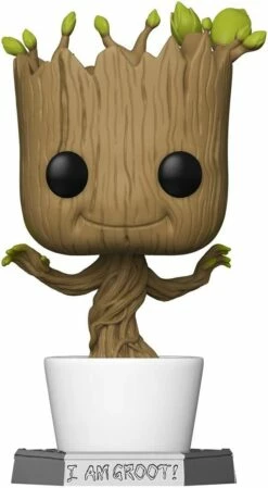 From Guardians of the Galaxy, 18” Dancing Groot, as a stylized 18” POP vinyl from Funko!