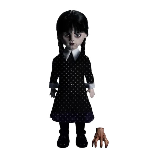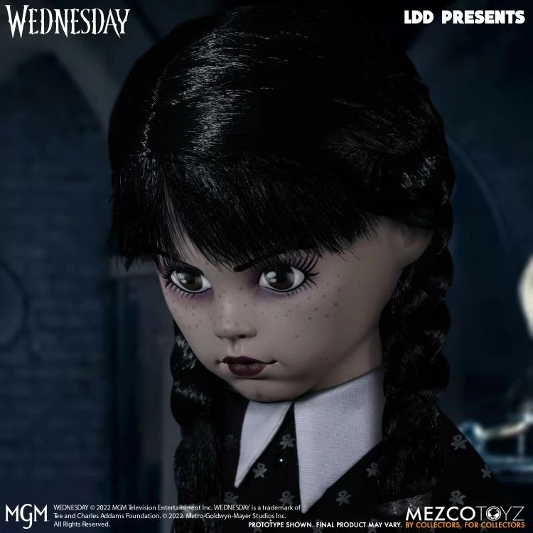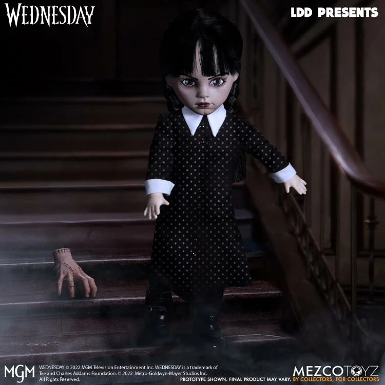 Wednesday features an all-new look that is still somehow familiar, outfitted in a collared dress, black leggings, and boots. She comes complete with a new painted portrait, signature pigtails, and her trusty hand-servant, Thing, in a static pose. LDD Presents Wednesday stands 10 inches tall and features 5 points of articulation. She is packaged in a window box and perfect for anyone looking to add to their display.