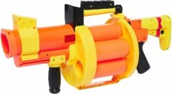 The Nerf Fortnite GL blaster is inspired by the one used in Fortnite, replicating the look of the one from the popular video game. The GL blaster fires big foam Nerf rockets for big battling action! It has a rotating drum that holds up to 6 rockets and fires 1 rocket at a time as you manually move the handle. Push the handle all the way forward – the drum rotates to place a rocket in firing position. Pull the handle all the way back to launch the rocket at your target. To blast another rocket, move the handle forward and backward again.