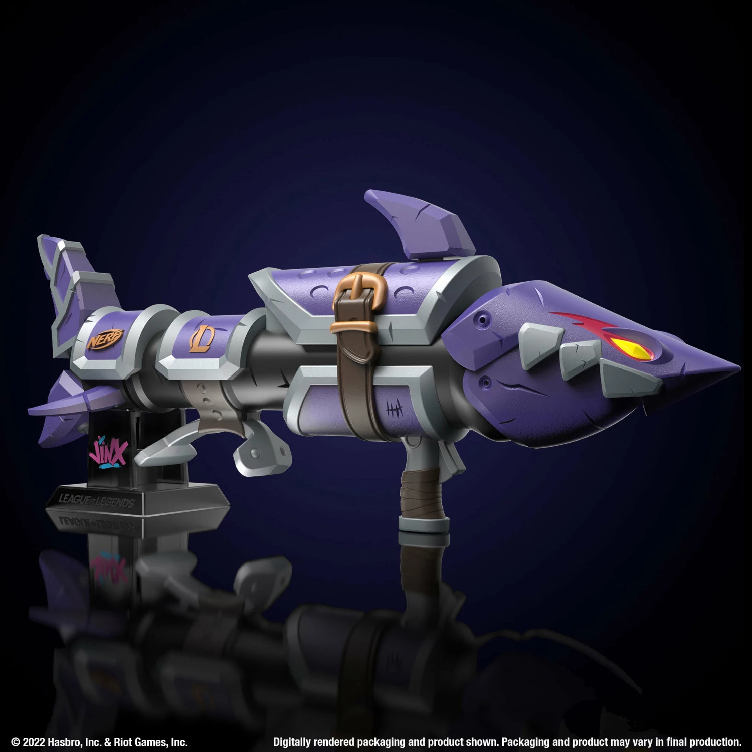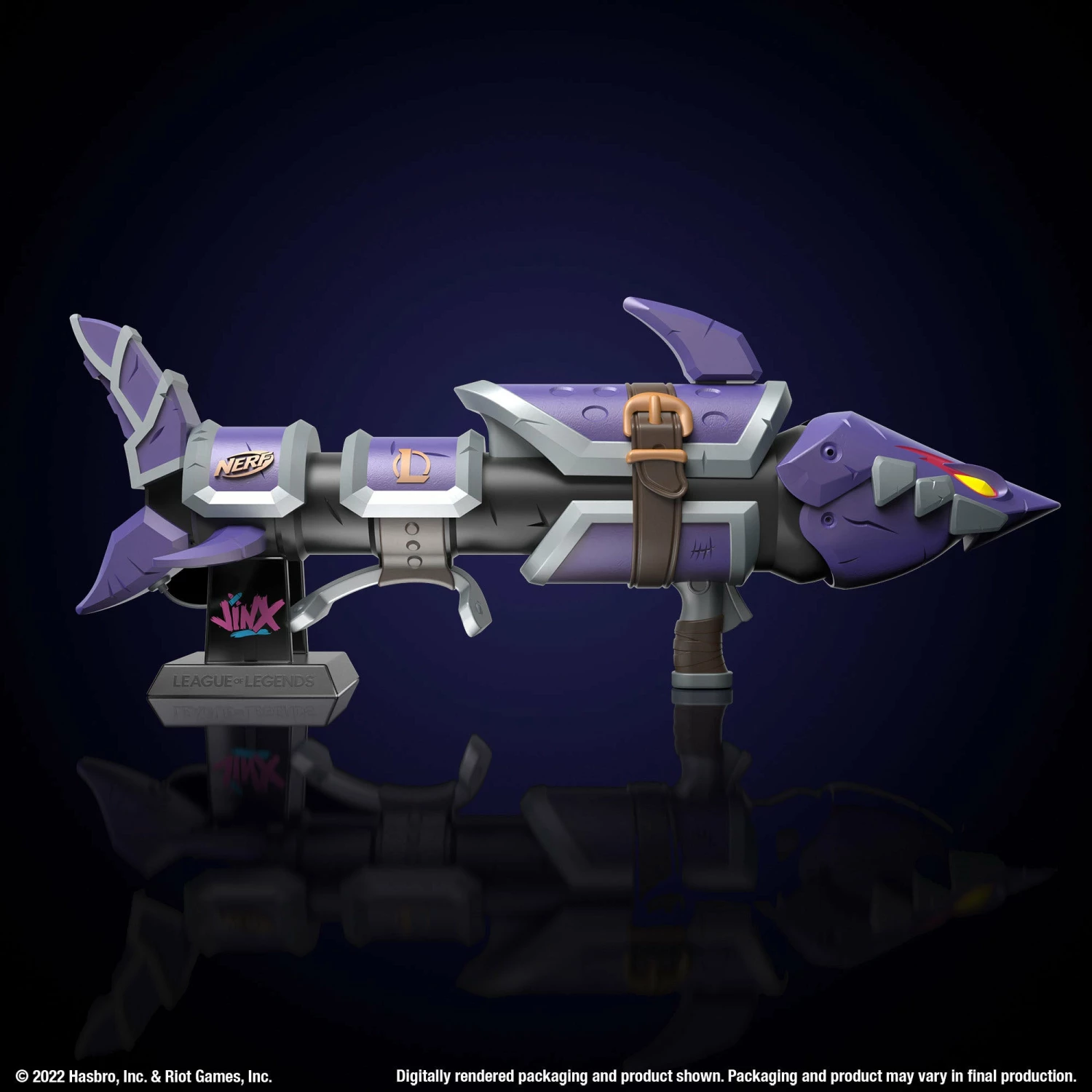 - Show off this limited edition blaster on the stand designed in Jinx style. Everything comes in premium packaging that’s also designed for display