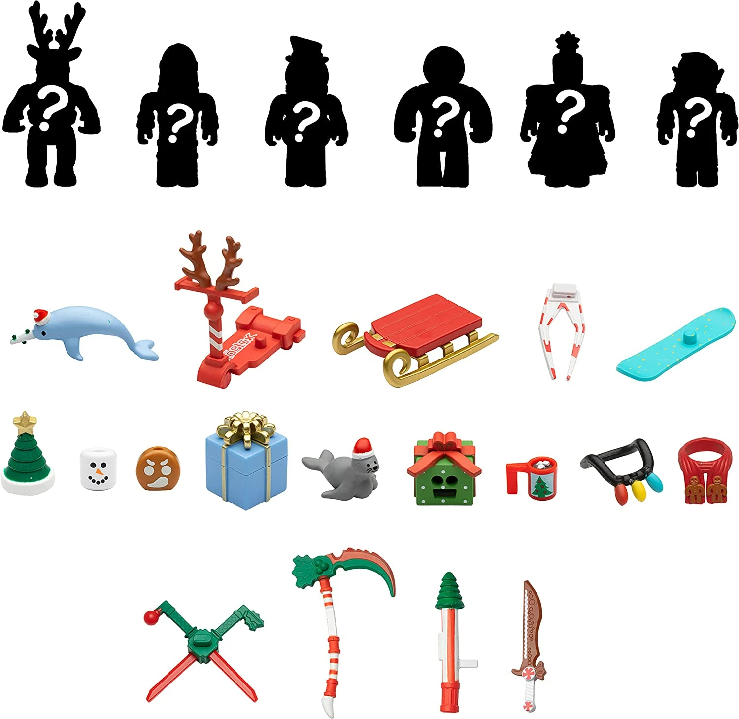 The Roblox Advent Calendar brings you holiday twists on Roblox figures and items. Unbox Elf, Christmas Tree, Gingerbread Man, Magical Reindeer, Santa Claus and Snowman Roblox figures. Deck out your figures with the included accessories and mix and match parts to make your own unique Roblox characters.