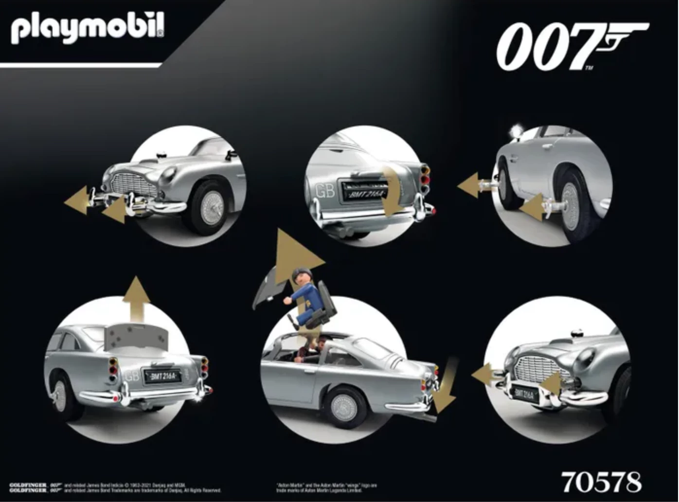 Contains: Playmobil James Bond Aston Martin DB5 – Goldfinger Edition 70578