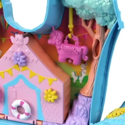 Welcome to the Polly Pocket Pajama Party! It’s time for PJs, games, giggles and fun. It’s the ultimate celebration! Shaped like an adorable llama, the Llama Party compact playset has a handle for portable play. Pull on the golden tassel and watch the colorful stream of confetti and over 25+ surprises fall from the playset. Open the playset to reveal a fun outdoor sleepover/glamping adventure with 2 micro dolls and so many fun things to do and explore! Open the tent, play on the water obstacle course, hang the piñata on the tree, and more. Many of the surprises have a Pop & Swap peg feature that lets kids plug the pieces into different areas of the compact for endless play possibilities! Colors and decorations may vary. Makes a great birthday and holiday gift for ages 4 years old and up.