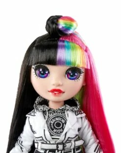 This Rainbow High Collector Doll Jett Dawson comes with 2 Premium one-of-a-kind doll outfits, 2 pairs of trendy shoes with 2 clear fashion trunks to store shoes and accessories. Jett has long, brushable trend-setting half black and half rainbow hair.