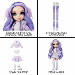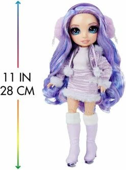This winter playset includes a Violet Willow fashion doll, 2 complete doll outfits, 2 pairs doll shoes, essential doll accessories like earmuffs, snow boots, Skis with working bindings that convert to a one-of-a-kind Winter-Themed Doll Stand and hair comb. Dress her in each look, then mix & match the trendsetting fashions that will keep her warm on and off the slopes. She’s fully articulated and posable. You can pose & play with her on the skis. Skis also transform into a doll stand so you can display her as well.
