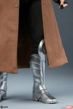 Inspired by his 90s era classic costume, the Gambit Deluxe Sixth Scale Figure features a detailed, cowled headsculpt based on Remy LeBeau’s comic book appearance, complete with swappable short hair and long hair sculpts for differing display options. His costume includes a black fabric body suit with magenta squares on the sleeves and legs, and his signature style is completed with a carefully tailored brown trench coat. Gambit also wears sculpted upper body armor and silver armored boots, bringing his ragin’ Cajun style off the page and onto your shelf.