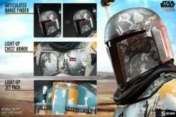 The digital chest plate, and jetpack have additional light-up elements to add display options. Mounted on a sleek and simple black base, the Boba Fett Life-Size Bust is a must-have centerpiece for your Star Wars collection.
