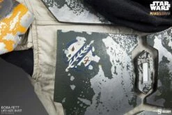 The Boba Fett Life-Size Bust measures 32.5” tall and 25.5” wide, lending to his famously intimidating presence. With his armor returned to him, the bounty hunter is prepared to make good on his word and protect his allies with every weapon at his disposal. Boba Fett’s helmet has an articulated rangefinder and careful paint application to recreate the distress and weathering on his ancestral armor. His updated costume has a sculpted undersuit and scarf, and his jetpack is mounted on his shoulders to complete his signature look.