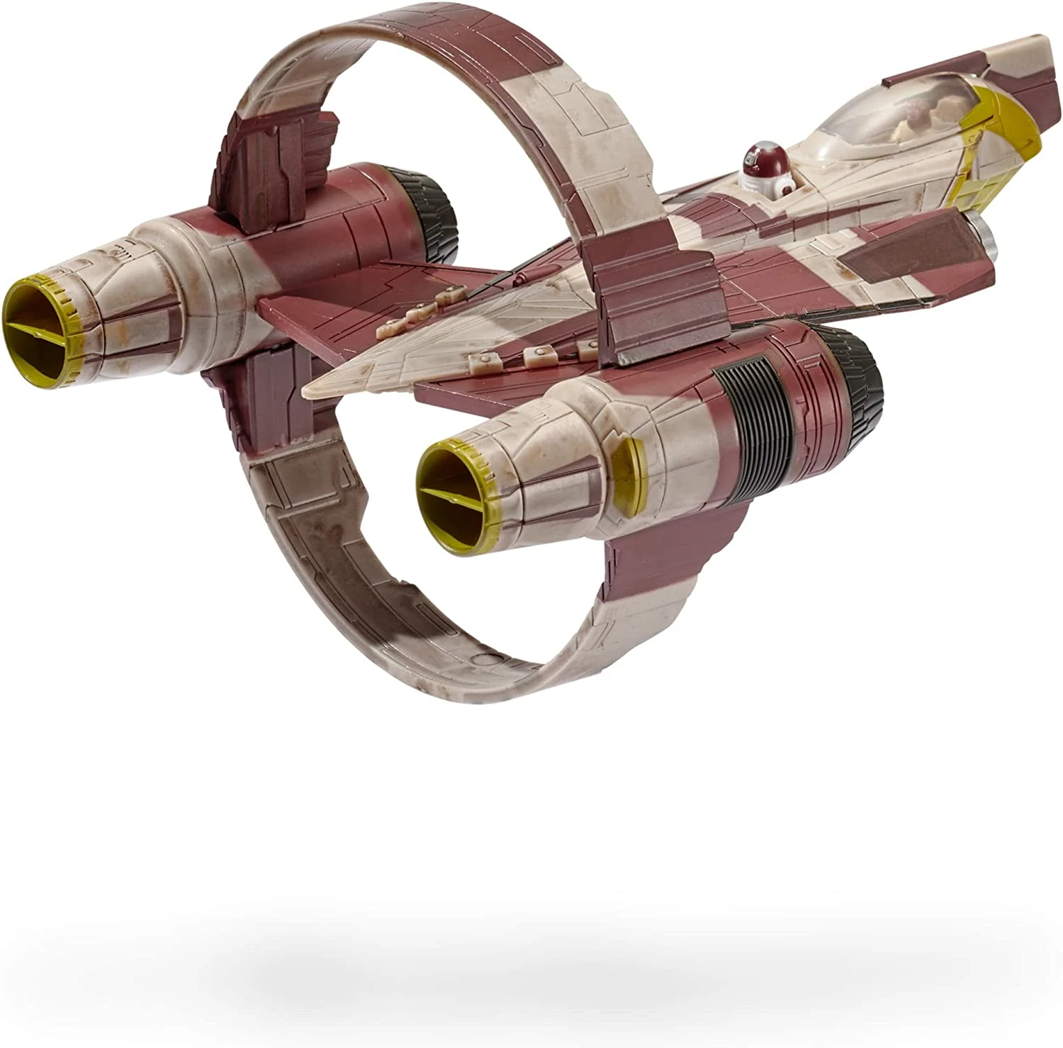 Navigate the Geonosian asteroid belt with a removable hyperdrive ring, retractable landing gear, opening cockpit, and working droid socket designed to fit the included R4-P17. Vehicle also includes an articulated 1-inch Obi-Wan Kenobi micro figure, compatible with any Star Wars Micro Galaxy Squadron craft.