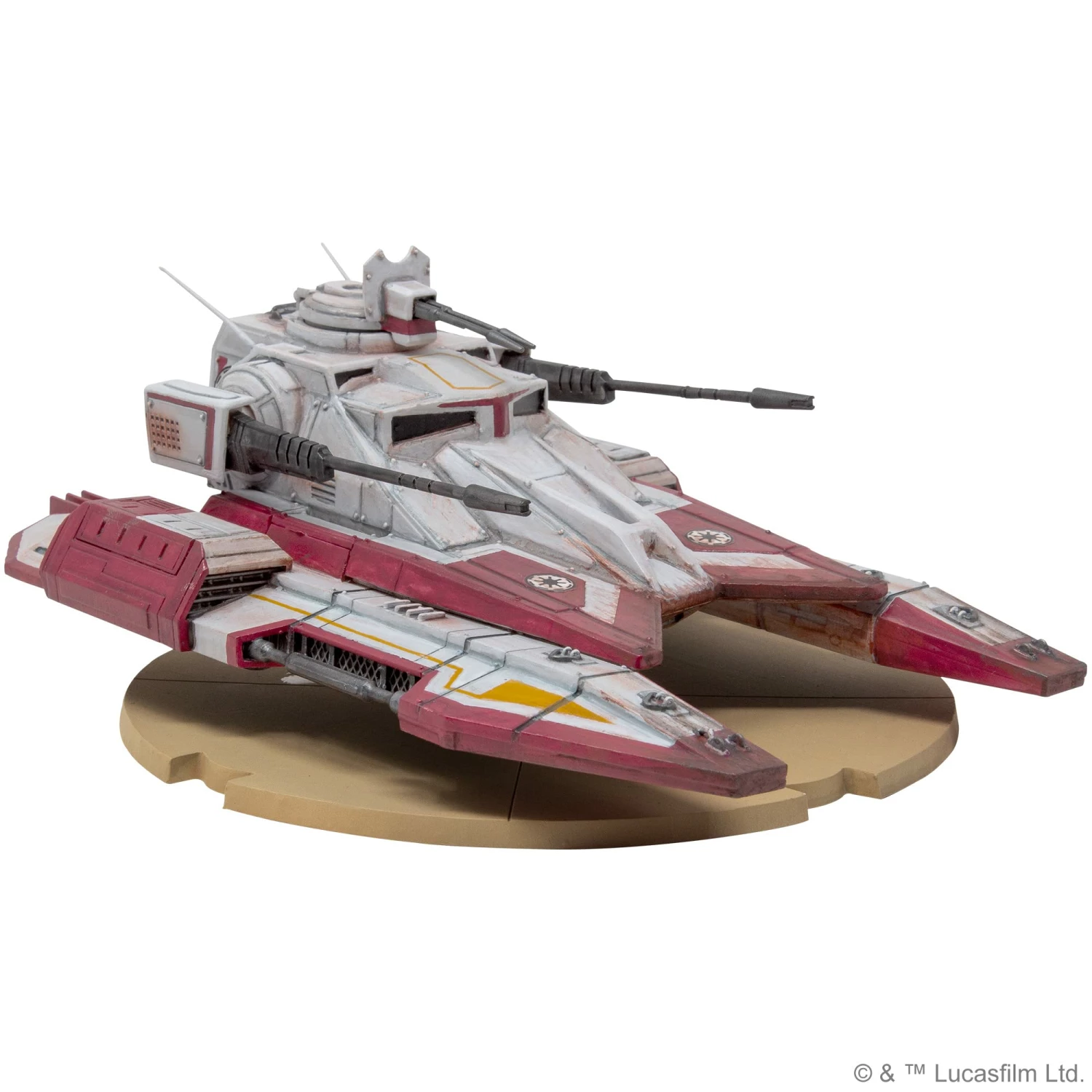 A light repulsor tank designed with the tactical flexibility of a starfighter, the TX-130 Saber-class fighter tank is agile and swift,making it an ideal match for the heightened acuity of Jedi generals like Aayla Secura or Plo Koon. For a battle tank, the Saber-class can be elegant as it nimbly weaves across the battlefield, slashing entire formations with a beam cannon or ripping apart enemy armor with twin laser cannons.