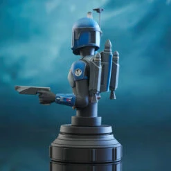 The Mandalorian leader is captured in her animated look in this all-new 1/7 scale resin bust. Depicting Bo-Katan Kryze with her dual pistols in hand this bust also comes with both helmeted & unhelmeted heads for two dynamic display options. Measuring approximately 6″ tall, this bust is limited to 3000 pieces and comes packaged in a full-color window box. Designed by Barry Bradfield, sculpted by Paul Harding
