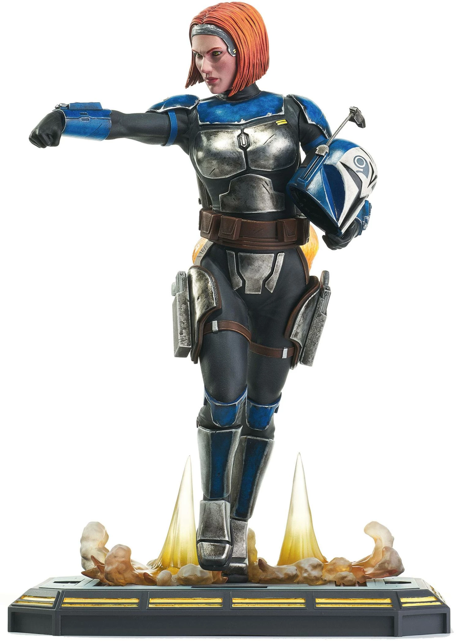 For the glory of Mandalore! Mandalorian freedom fighter Bo Katan blasts her way into the Premier Collection with this dynamic, customizable statue! Featuring interchangeable helmeted & unhelmeted heads, and alternate helmet-holding & gun-holding arms. Bo Katan engages her jetpack in this 1/7 scale, approximately 11″ statue. Limited to only 3,000 pieces, it comes packaged with a numbered certificate of authenticity in a full-color box. Designed by Barry Bradfield and sculpted by Alejandro Pereira!