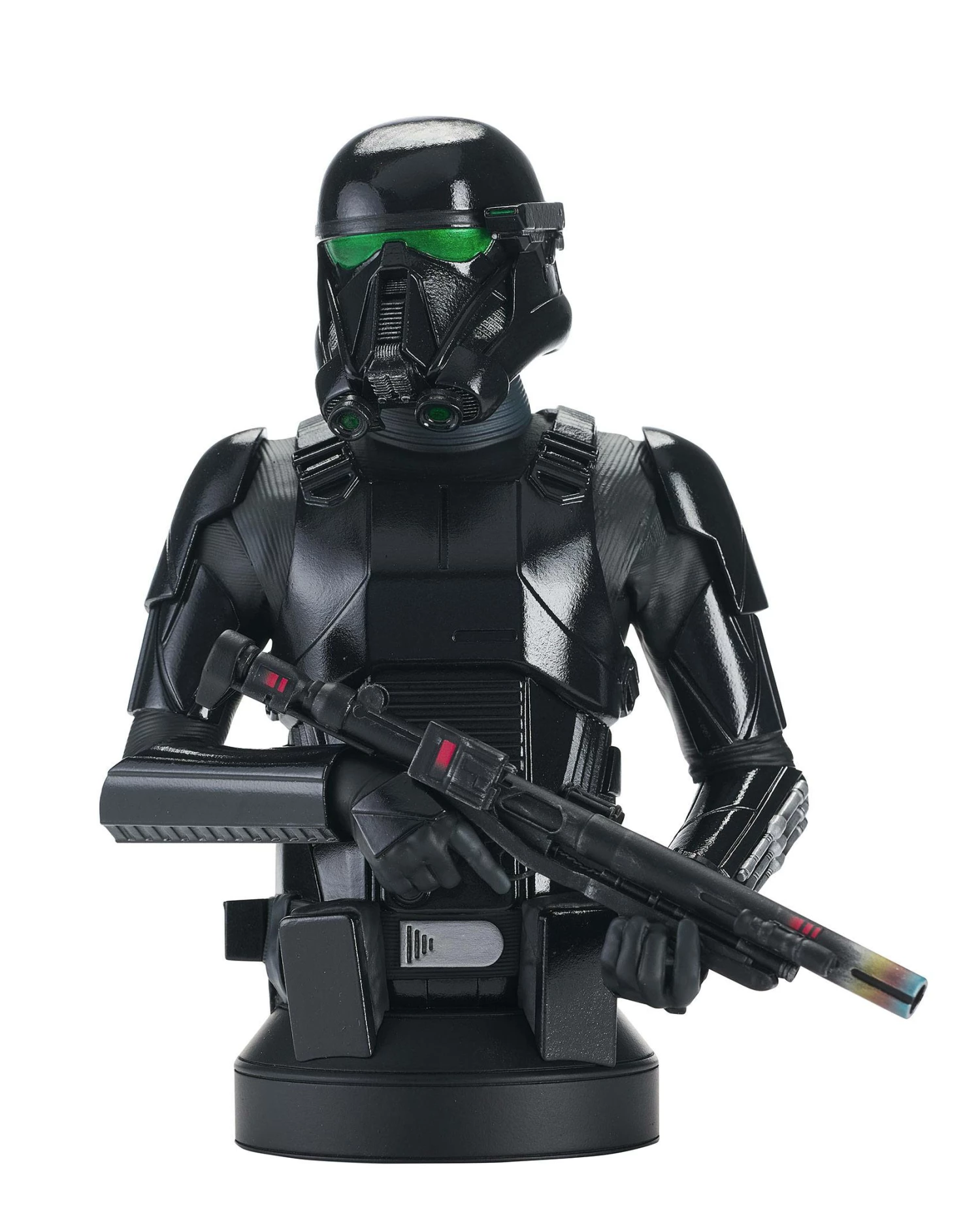 These stormtroopers are back in black! The Death Trooper is an elite stormtrooper, seen in Star Wars: Rogue One, The Mandalorian, and numerous video games and comic books. Wearing all black, they strike a frightening appearance, and now they’re the newest 1/6 scale mini-bust from Gentle Giant Ltd. Measuring approximately 7″ tall, this resin bust features detailed sculpting and paint applications. Limited to only 2,000 pieces it comes packaged in a full-color box with a numbered certificate of authenticity. Designed and sculpted by Gentle Giant Ltd.