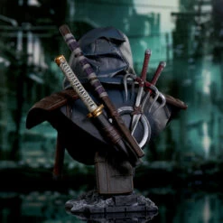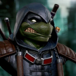 As seen in the hit TMNT comic book The Last Ronin, the last surviving Ninja Turtle is now a 10 inches tall, 1/2 scale bust, atop a detailed sewer pipe base. With his brothers’ weapons on his back, and a pair of nunchucks draped over his shoulders, this bust of the Last Ronin is limited to only 1000 pieces, and comes packaged with a numbered certificate of authenticity in a full-color box. Designed by Joe Allard, sculpted by Kinetic Underground!